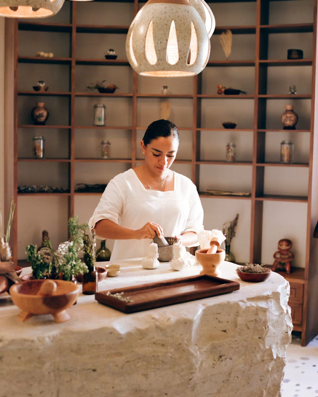 Высококвалифицированный персонал и богатый выбор процедур, как классических, так и оригинальных. Широкое использование традиционных целительных практик майя и местных ингредиентов.