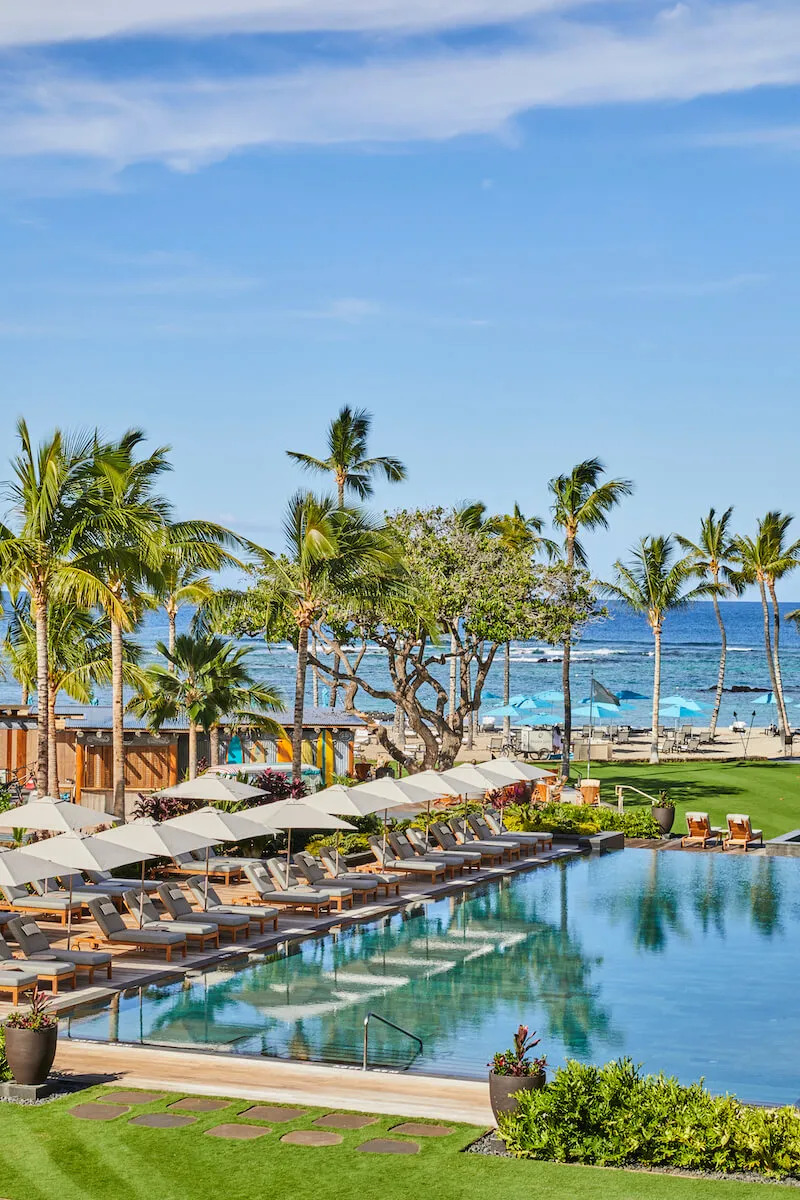 Mauna Lani (в переводе “небесная гора”) – большой курортный комплекс, расположенный всего в 30 минутах езды от аэропорта Кона на живописном участке побережья Кона-Кохала. Бренд Auberge Resorts приобрел его в 2018 г. и потратил 200 млн долл. на полную реконструкцию.