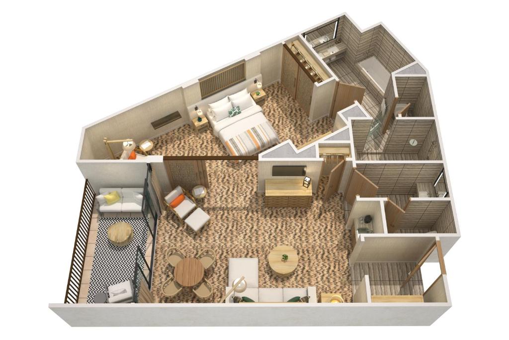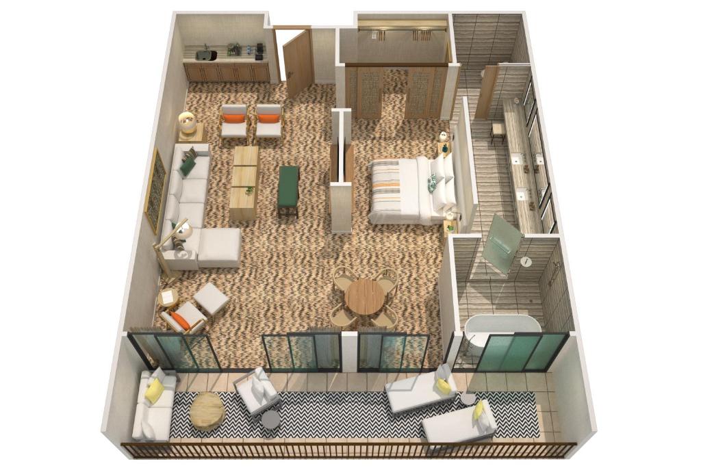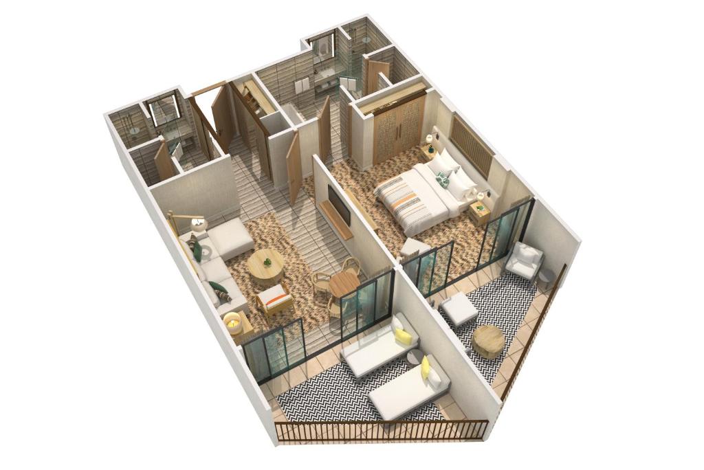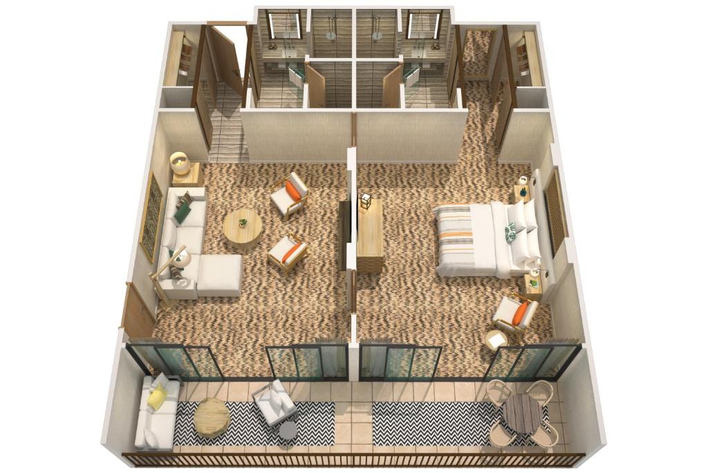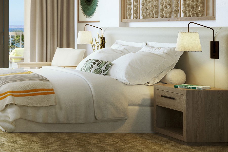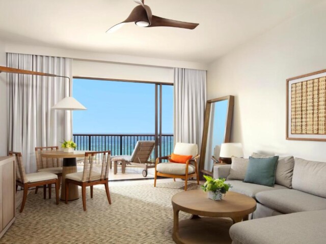 333 номера и сьюта отеля Mauna Lani имеют большие балконы и террасы. Благодаря уникальной стреловидной форме здания, большинство из них расположены таким образом, что с них открываются великолепные виды на закат над океаном.