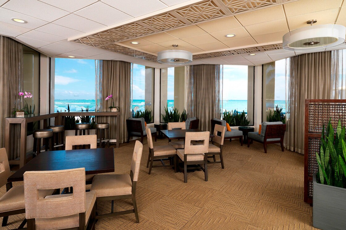 Гостям предлагается: Континентальный завтрак (включает фрукты, выпечку, соки, кофе и чай) с 06:00 до 10:00, закуски в течение дня, Concierge Services, Computer Access/Wi‐Fi, открыт ежедневно: 06:00 – 22:00), расположен в крыле Tower Wing, Lobby Level