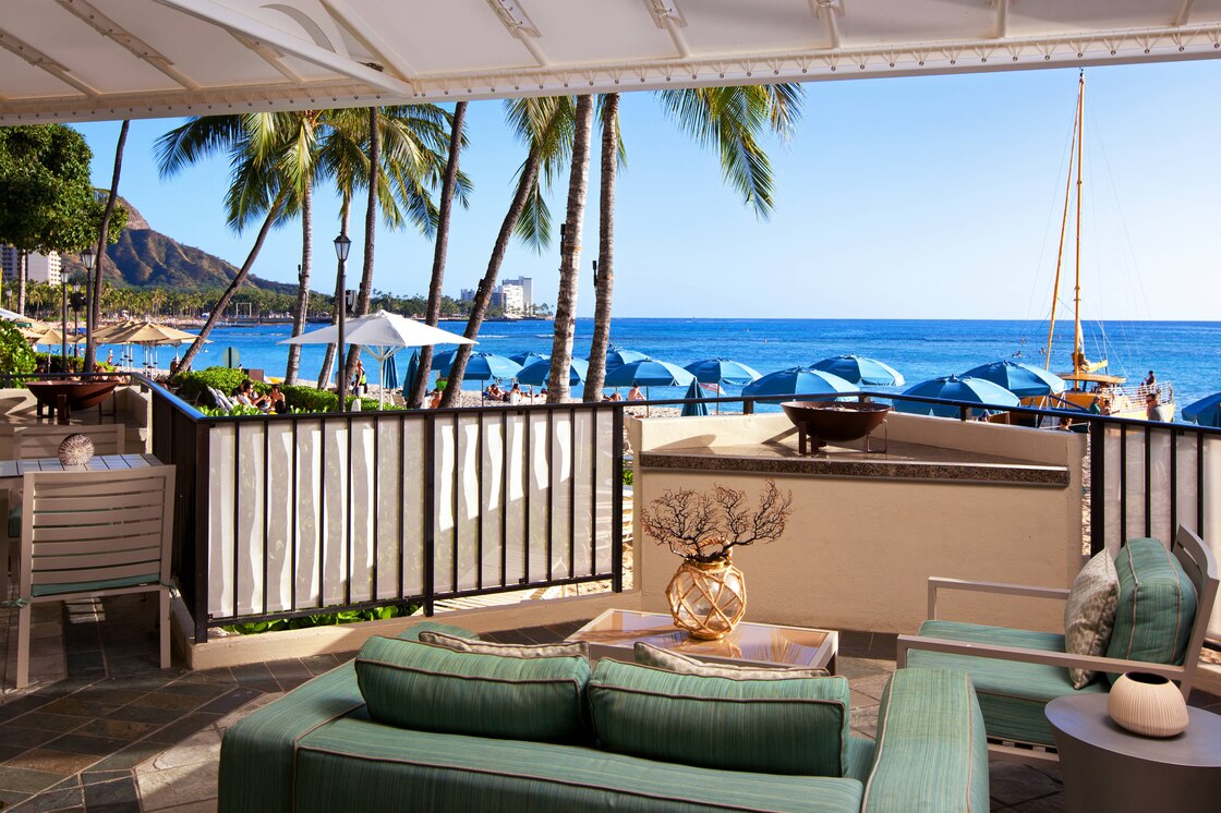 Moana Beach Club Lounge с видом на океан.