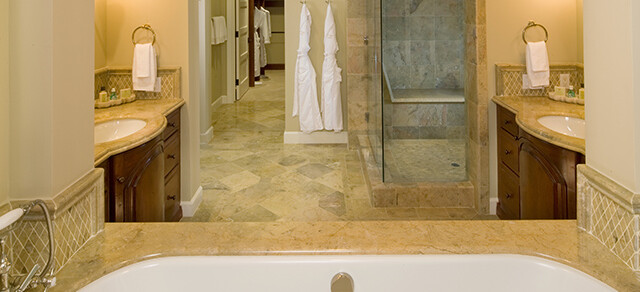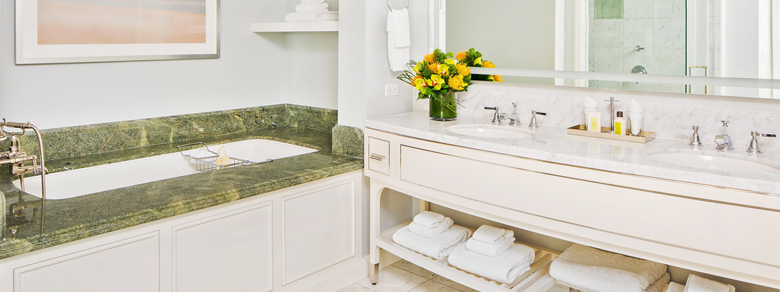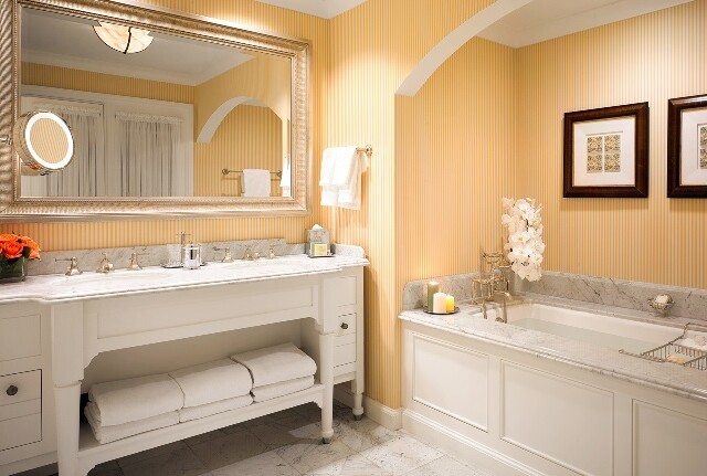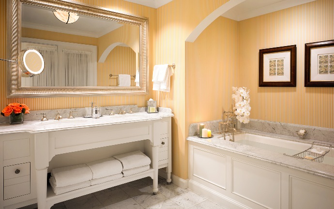 Просторный номер в бежевых тонах. В номере спальня с зоной отдыха, гостиная с мягкой мебелью, обеденной зоной, газовым камином. Ванная комната с двойной раковиной, ванной и отдельной душевой кабиной, гостевой туалет.