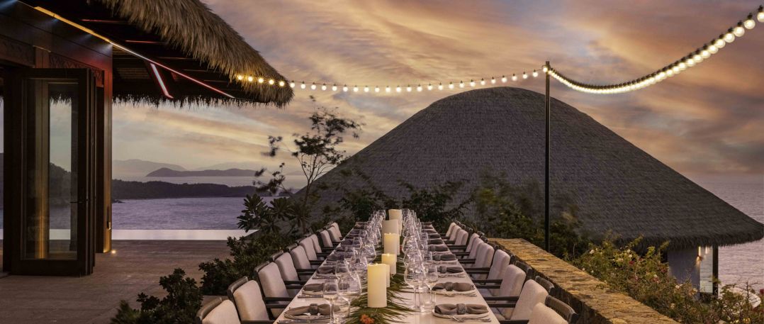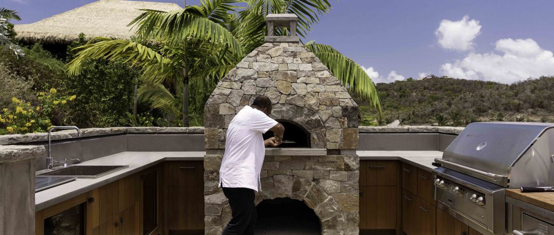 Завтрак, обед или ужин может быть накрыт в любом месте или в любом уголке владения и даже острова по желанию гостей. На территории расположено несколько обеденных павильонов.