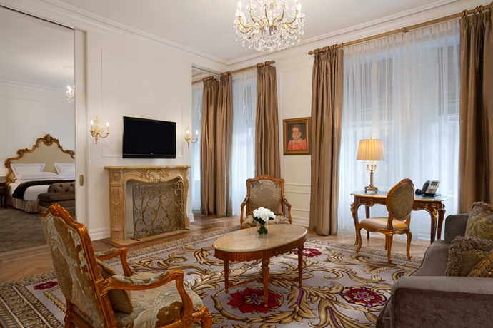 Просторный номер с видом на парк. В номере: спальня с небольшой зоной отдыха, гостиная с мягкой мебелью и рабочим столом, небольшой буфет с раковиной. Спальня отделена от гостиной раздвижными дверями. Ванная комната с ванной и отдельной душевой кабиной. Гостевой туалет.