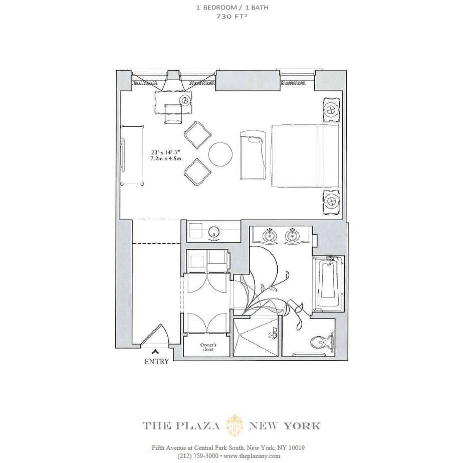 Большой и красивый номер выходит на Пулитцеровский фонтан на Гранд Арми Плаза. В номере: спальня с небольшой зоной отдыха, гостиная с мягкой мебелью, небольшой буфет с раковиной. Ванная комната с ванной и отдельной душевой кабиной. Гостевой туалет.