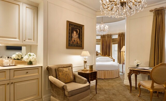Просторный номер оформлен в стиле эдвардианского неоклассицизма. В номере: гостиная с мягкой мебелью, отделенная от спальни раздвижными дверями, небольшой буфет с раковиной, микроволновой печью и мини-холодильником. Спальня с небольшой зоной отдыха. Ванная комната с ванной и отдельной душевой кабиной. Гостевой туалет.