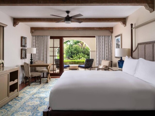 Один из лучших отелей класса люкс в Санта-Барбаре. Удобное расположение, живописные окрестности, красивая архитектура: двух- и трехэтажные коттеджи в колониальном стиле с террасами, красные черепичные крыши, большая территория, ухоженный сад с тенистыми аллеями и фонтанами – все это создает идеальные условия для спокойного отдыха. К услугам клиентов просторные светлые номера с элегантными интерьерами, большой спа-салон и фитнес-центр, бассейны, рестораны и бары, различные виды водного спорта.