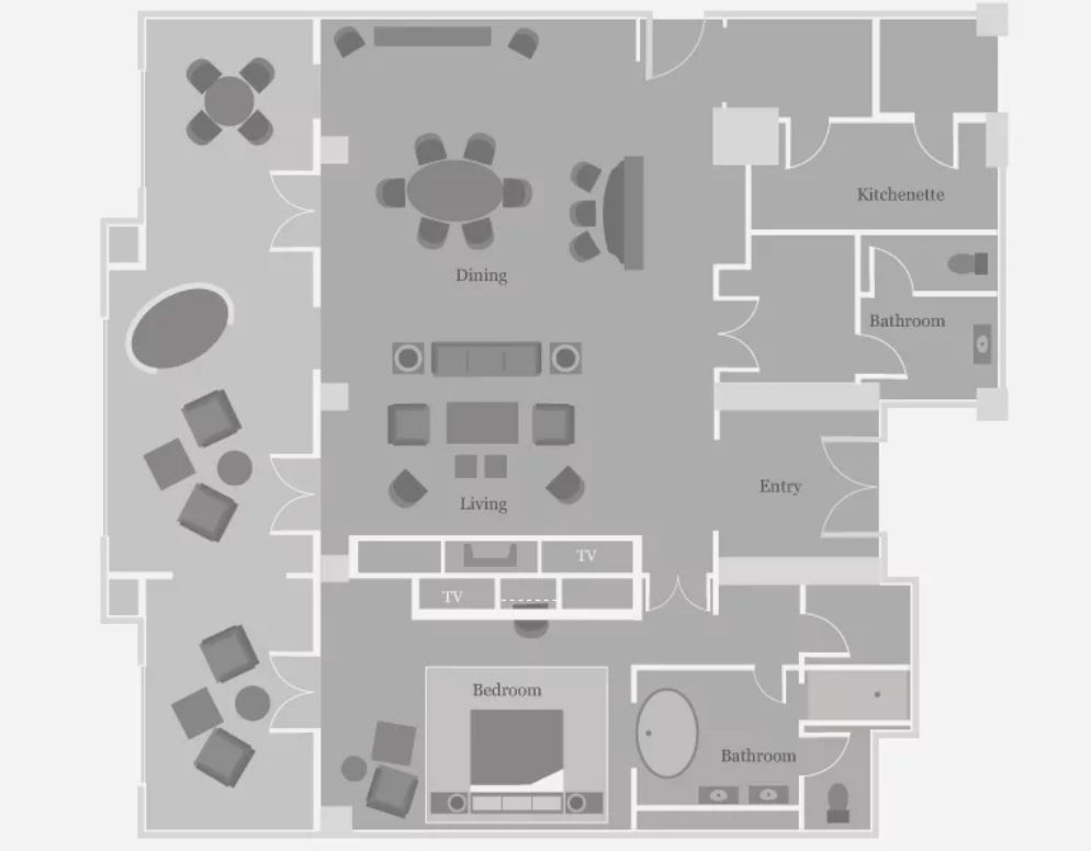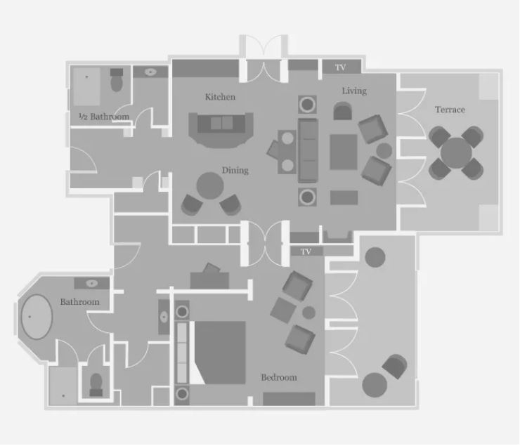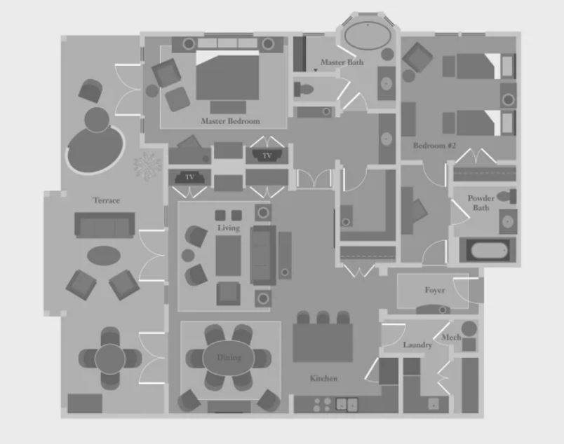 Отель состоит из основного здания, где расположено большинство номеров, спа-центр, один из ресторанов и два бассейна, и зданий резиденций, спускающихся к заливу (без пляжа). Для гостей резиденций предусмотрены гольф-кары.