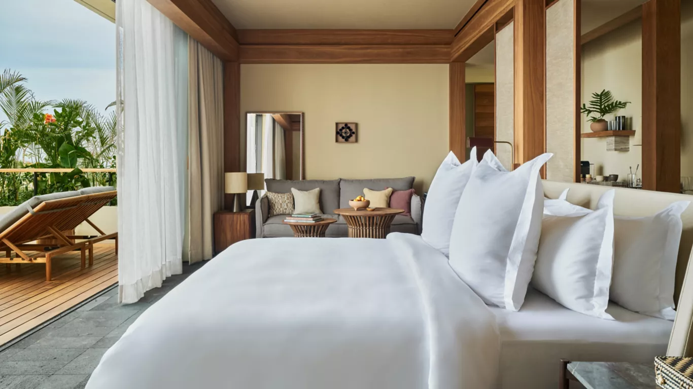 - Пляжные сьюты: прямой выход к песчаному берегу с частной террасы, настоящий «toes-in-the-sand» опыт.