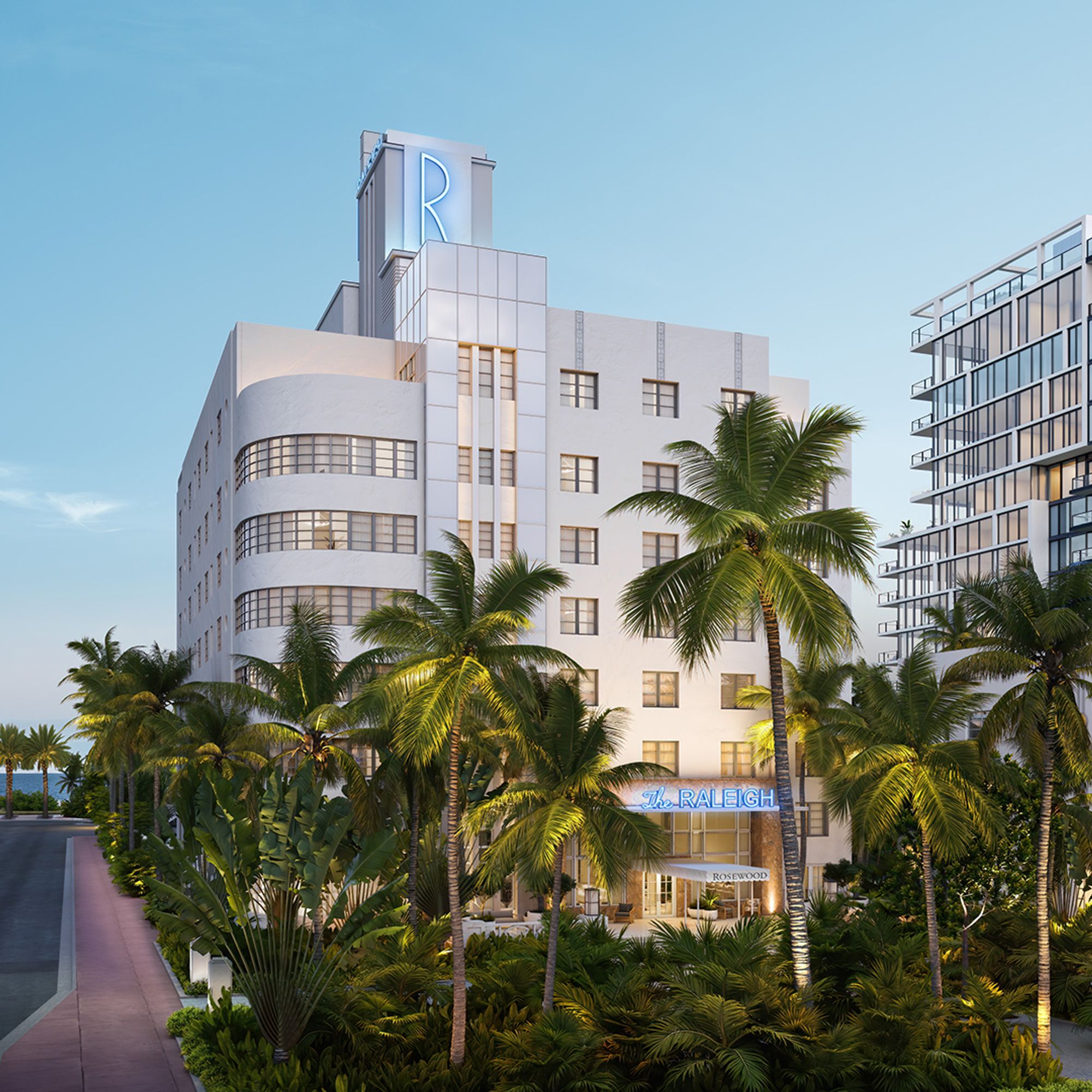 Отель Rosewood The Raleigh будет включать три исторических здания: The Raleigh, первоначально построенное в 1940-х годах архитектором из Майами Лоуренсом Мюрреем Диксоном, и два соседних отеля – Richmond и South Seas. Исторический фасад каждого здания в стиле ар-деко будет отреставрирован и интегрирован в единый комплекс из 60 номеров и сьютов, а в новой современной башне, примыкающей к отелю Raleigh, расположится Rosewood Residences Miami Beach – 44 частных апартамента с видом на океан.