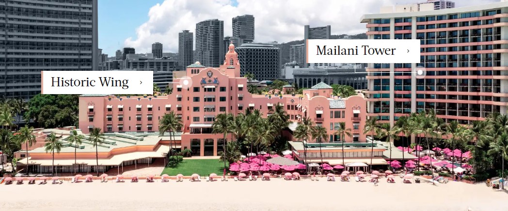 Старейший отель Waikiki, знаменитый «розовый замок», ставший свидетелем превращения затерянных островов в курортный рай. Он бережно хранит дух и атмосферу первой половины XX века, когда в 1927 году для богатой американской публики на модном и экзотическом курорте был открыт первый подобный отель.