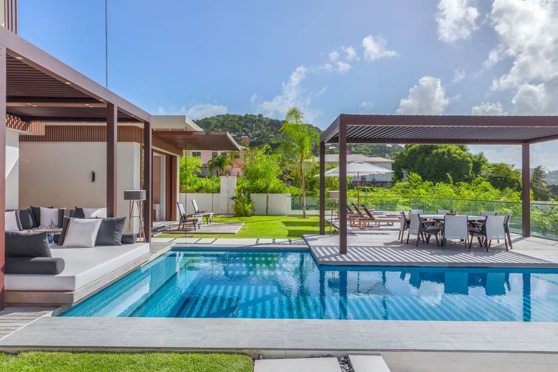 Эта двухуровневая вилла с бассейном с видом на океан расположена на самой высокой точке курорта, откуда открывается великолепный вид на весь курорт и Карибское море.