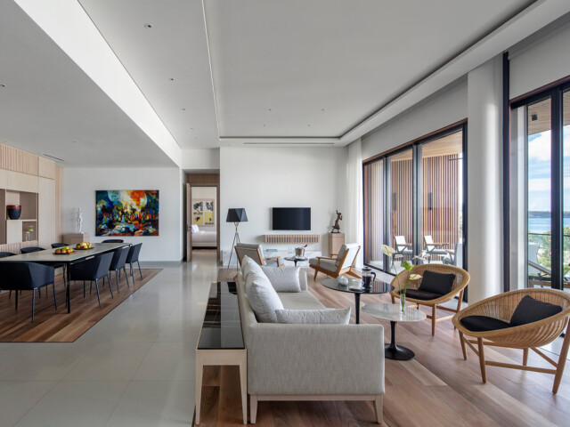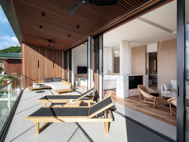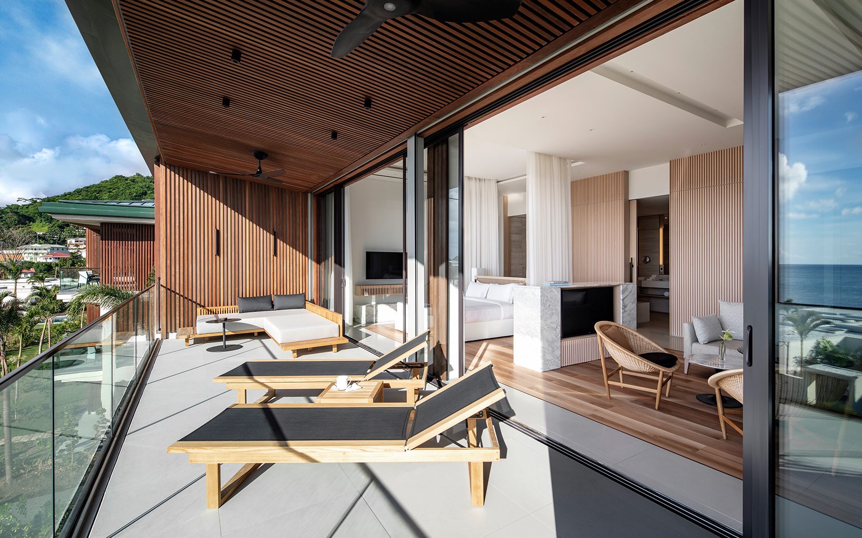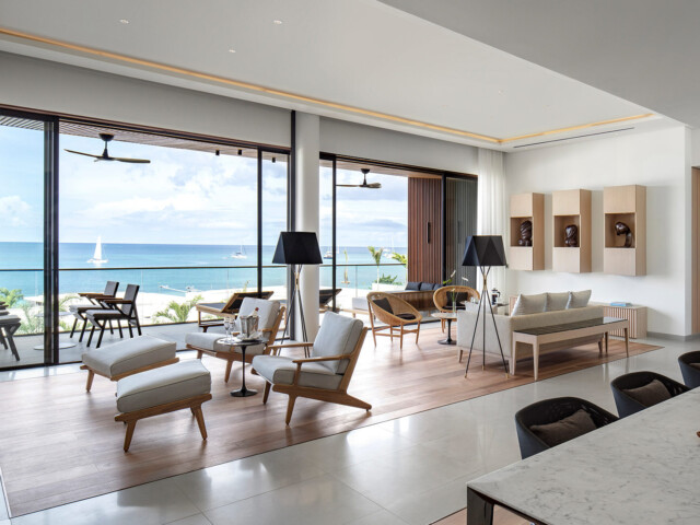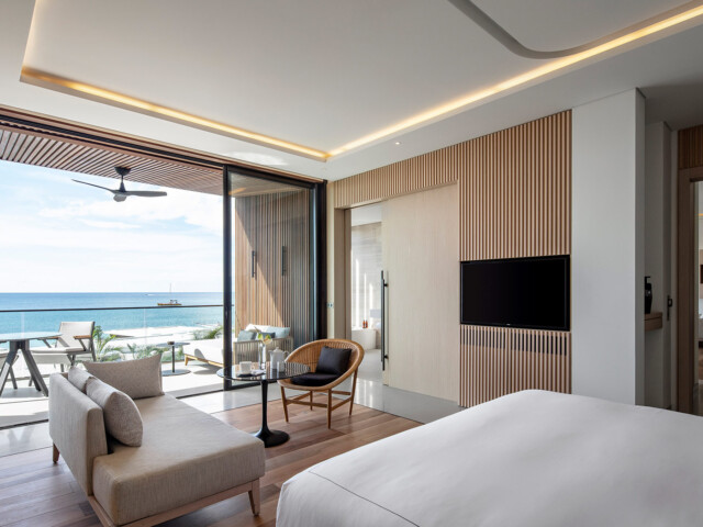 Номера на верхнем, третьем этаже здания представляют собой объединенные Ocean View Junior Suite и Penthouse Level King.