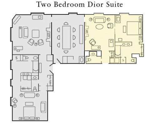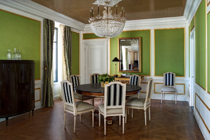Просторный элегантный номер, дизайн которого был создан Домом Christian Dior. В отделке использованы натуральные шелк и кожа, высокие потолки украшены лепниной.