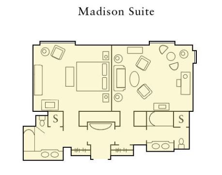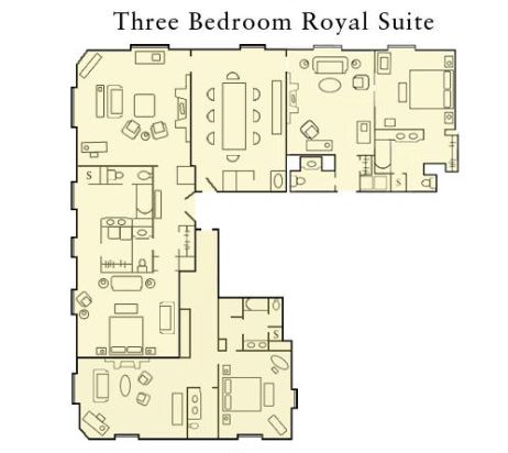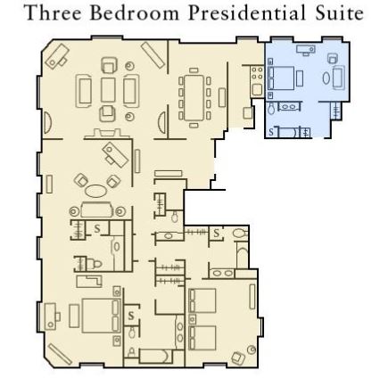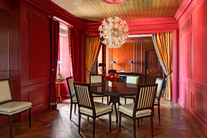 В номере фойе, две спальни, просторная гостиная, столовая на 10 человек, кухня с отдельным входом, библиотека/рабочий кабинет, 3 ванные комнаты, гостевой туалет.
