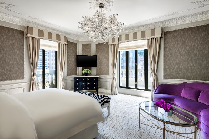 Дизайн номера разработан при участии известного британского автопроизводителя класса люкс Bentley Motors. Эксклюзивный декор, панорамные окна с красивыми видами на Манхэттен, фойе, просторная гостиная, небольшая кухня, столовая, спальня, роскошня ванная комната и гостевой туалет.