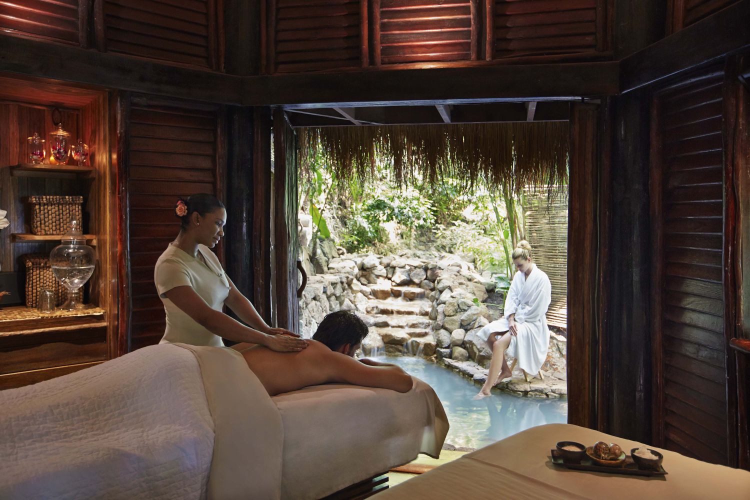Спа-центр состоит из десяти процедурных кабинетов-бунгало, расположенных на разных уровнях в зелени тропических джунглей, включая Suite для пар, поднятый высоко над землей до уровня крон деревьев.