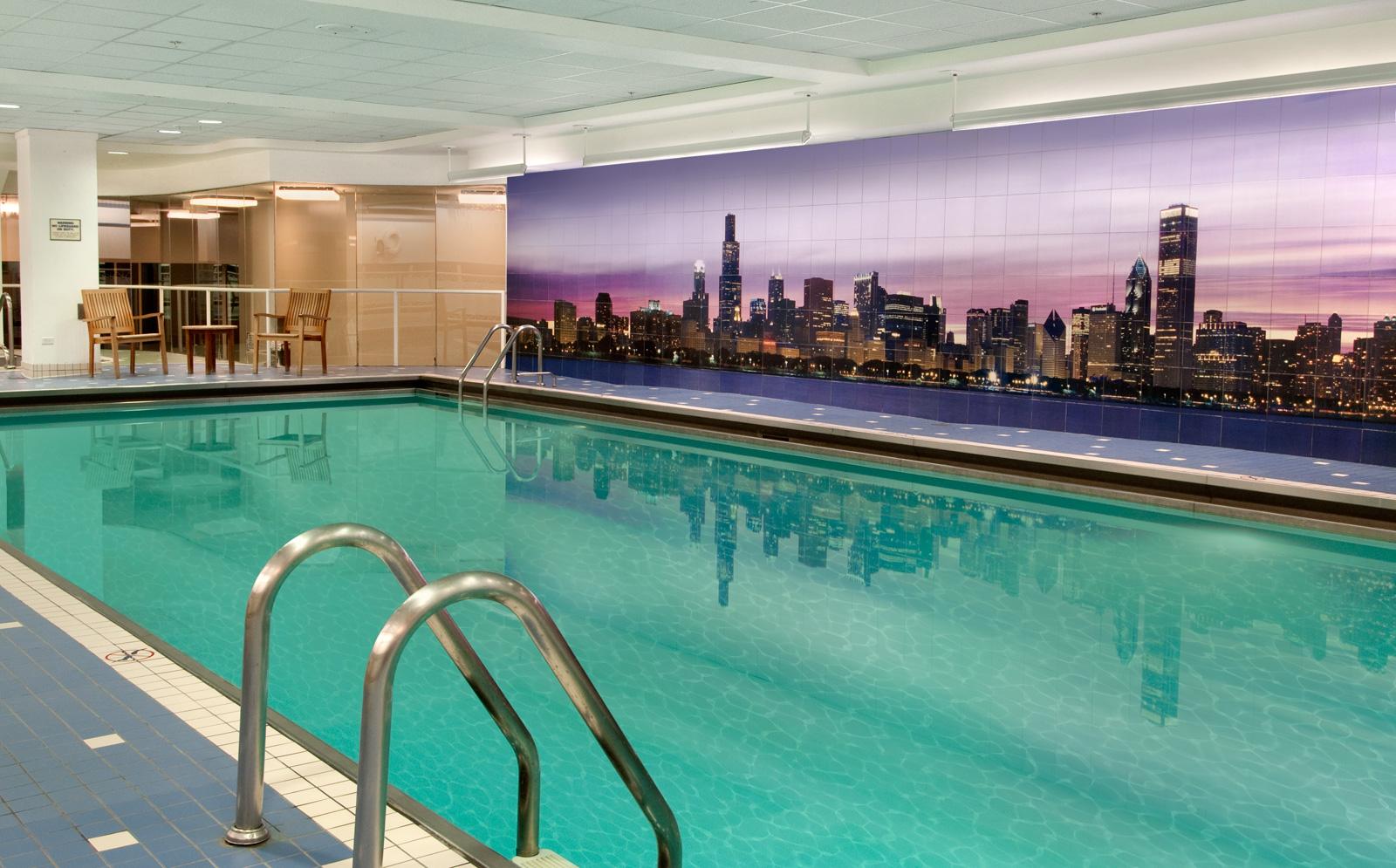 Крытый подогреваемый бассейн на 42м этаже с видом на город и озеро Мичиган