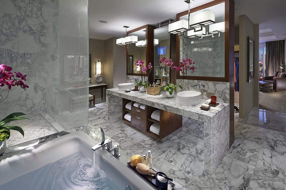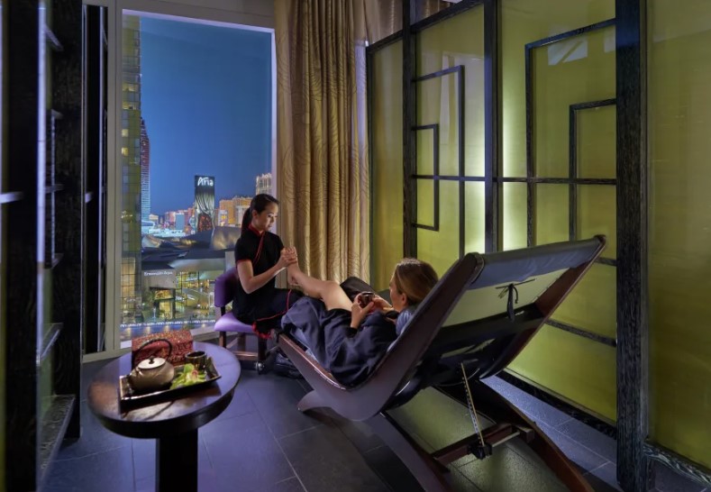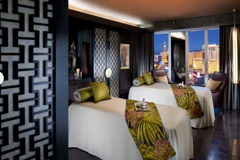 SPA-центр расположен на двух этажах отеля и занимает площадь в 2 508 м2. К услугам гостей – 17 процедурных кабинетов, включая 7 эксклюзивных Suites для пар. В меню большой выбор процедур по уходу за лицом и телом, массаж, ароматерапия. Оборудован двумя бассейнами (для “нее” и для “него”), парными, сауной, душевыми, зонами релаксации с прекрасным видом на Las Vegas Boulevard.