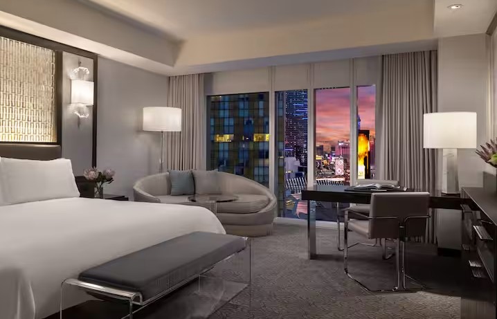 Один из лучших отелей Лас Вегаса является частью современного комплекса CityCenter, расположенного в самом центре города, на знаменитой улице Las Vegas Strip в двух шагах от основных мест притяжения Лас-Вегаса: казино, концертных залов, знаменитых ресторанов и торговых центров. Здание отеля соединено переходом с торговым центром Crystals, где расположены бутики самых престижных торговых марок.