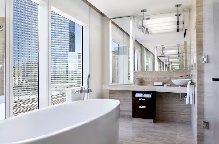 Изюминка отеля – “небесный” Hotel Bar, расположившийся на 23-м этаже и предлагающий самые удачные виды на город. Еще одна гордость – Waldorf Astoria Spa – небольшой роскошный спа-центр также с прекрасными видами на Вегас.