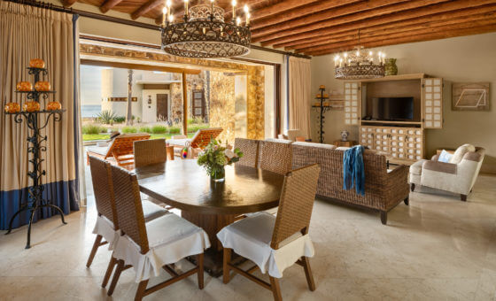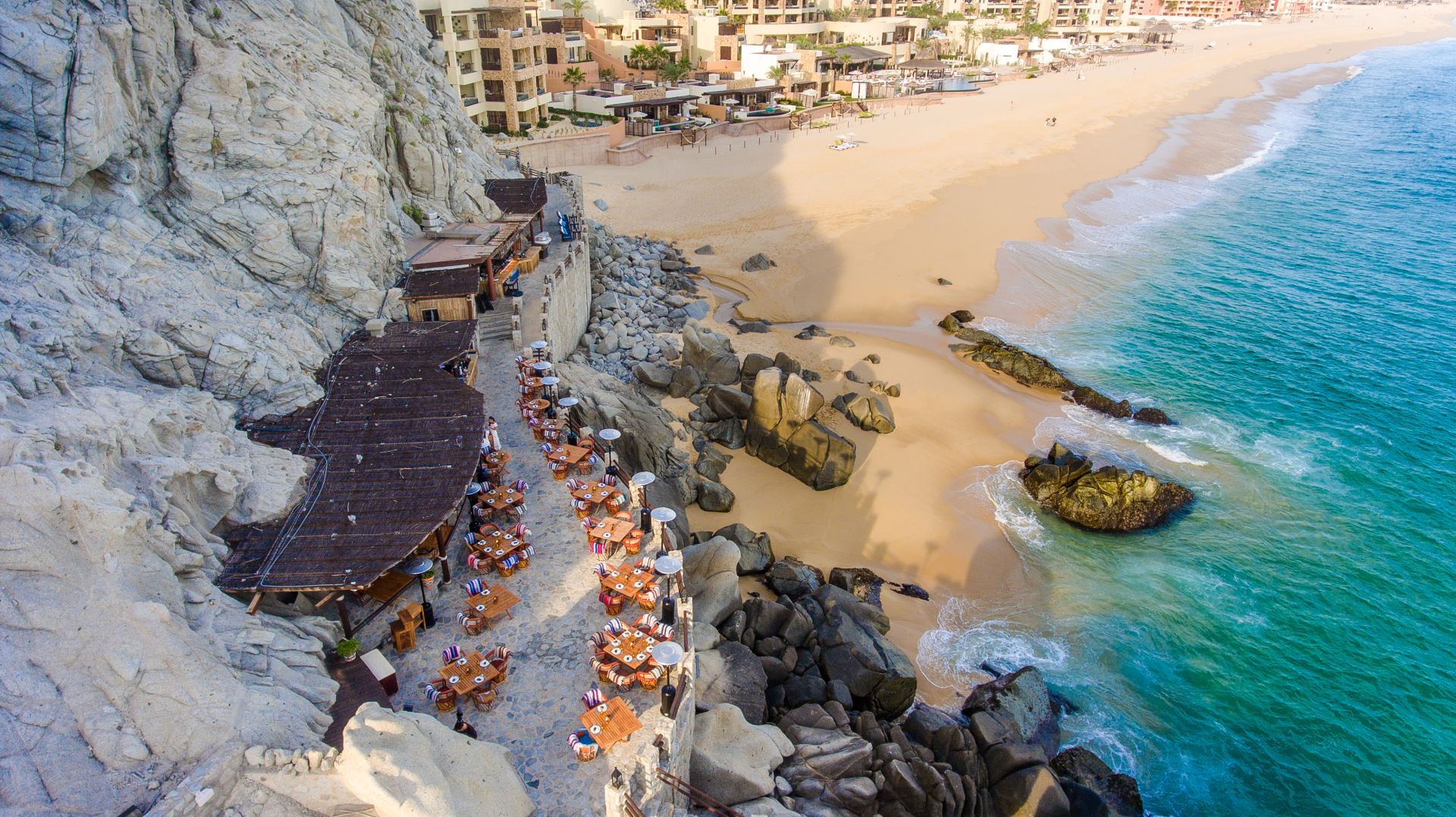 Чтобы попасть на территорию отеля, необходимо проделать путь через 300-метровый тоннель Dos Mares, проложенный в скале, отделяющий город Cabo San Lucas от океана.