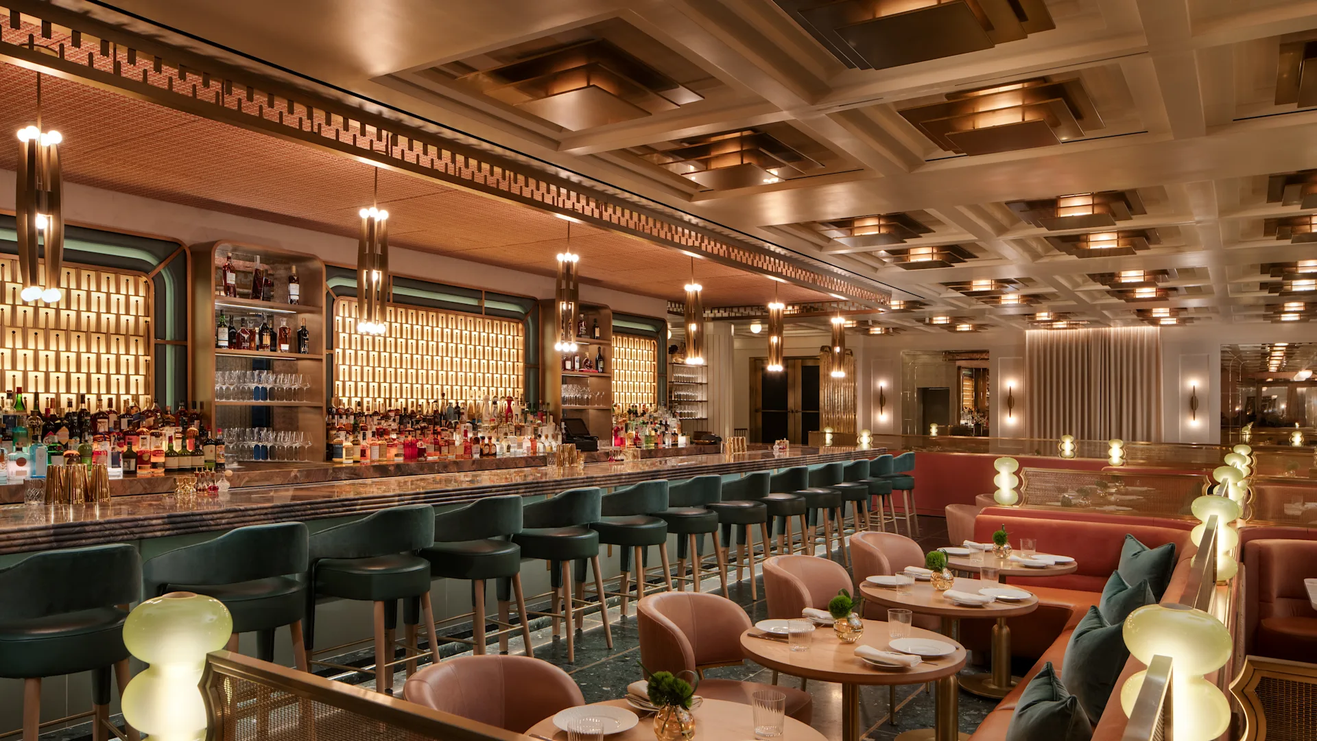 - Peacock Alley. Исторический лобби-бар, символ отеля. Атмосфера лаунж-ресторана с элегантным интерьером и живой историей: здесь расположено знаменитое пианино Коула Портера и часы королевы Виктории. В меню — лёгкие закуски, морепродукты (включая seafood towers и lobster roll с трюфелями), а также фирменные коктейли. Открыто с утра до позднего вечера.