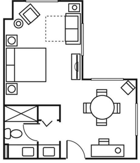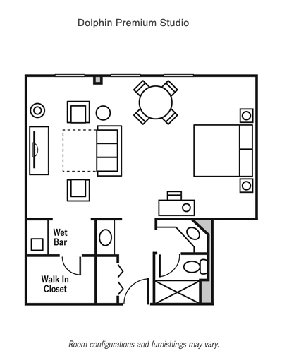 Комната больше по площади, чем Traditional Room, имеет гостиную зону, не разделенную со спальней дверью. Просторный гардероб, ванная комната с ванной или душевой кабиной.