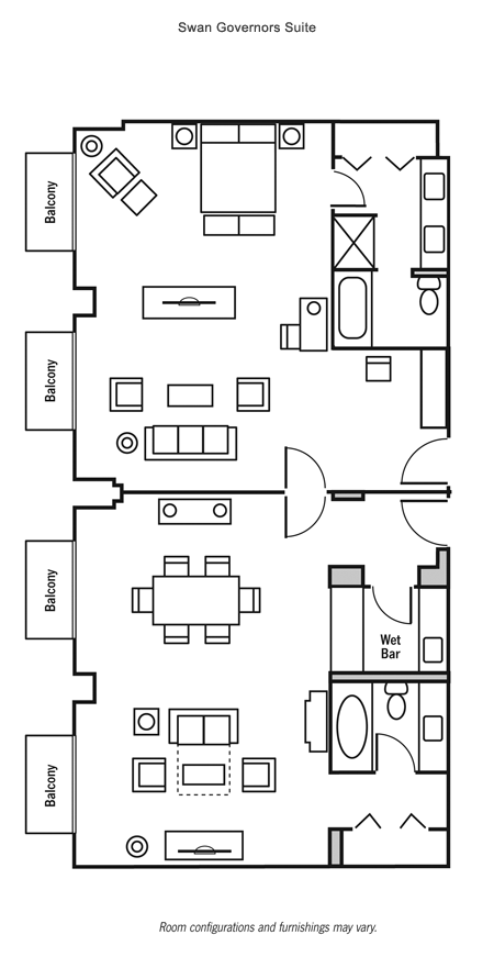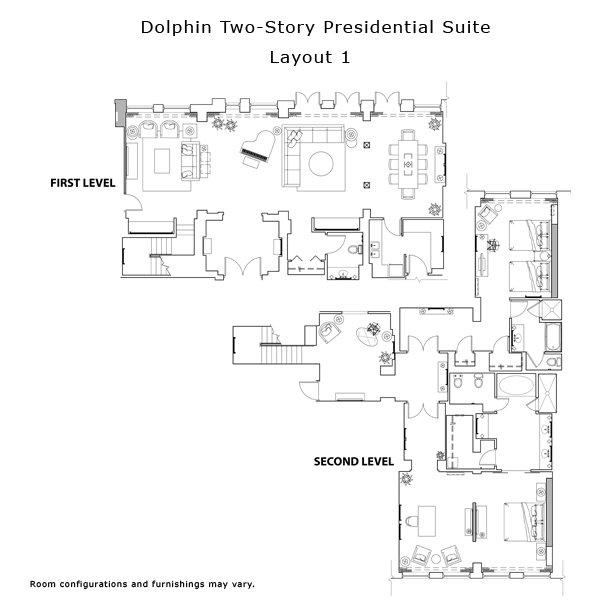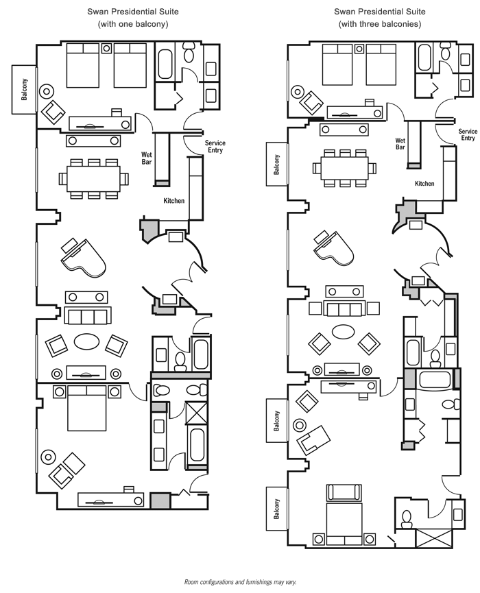 Просторный номер с двумя спальнями, гостиная с мягкой мебелью и обеденным столом на 6 персон. Две ванные комнаты, гостевой туалет. Расположен в корпусе Swan. Дизайн выполнен по проекту всемирно-известного архитектора и дизайнера Майкла Грейвса, сочетает изысканность и непринужденный комфорт.