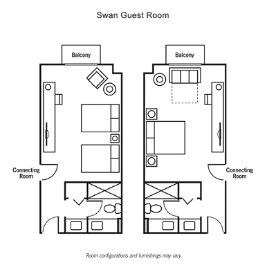1514 номера в корпусе Dolphin, 756 - в корпусе Swan, 349 в Walt Disney World Swan Reserve