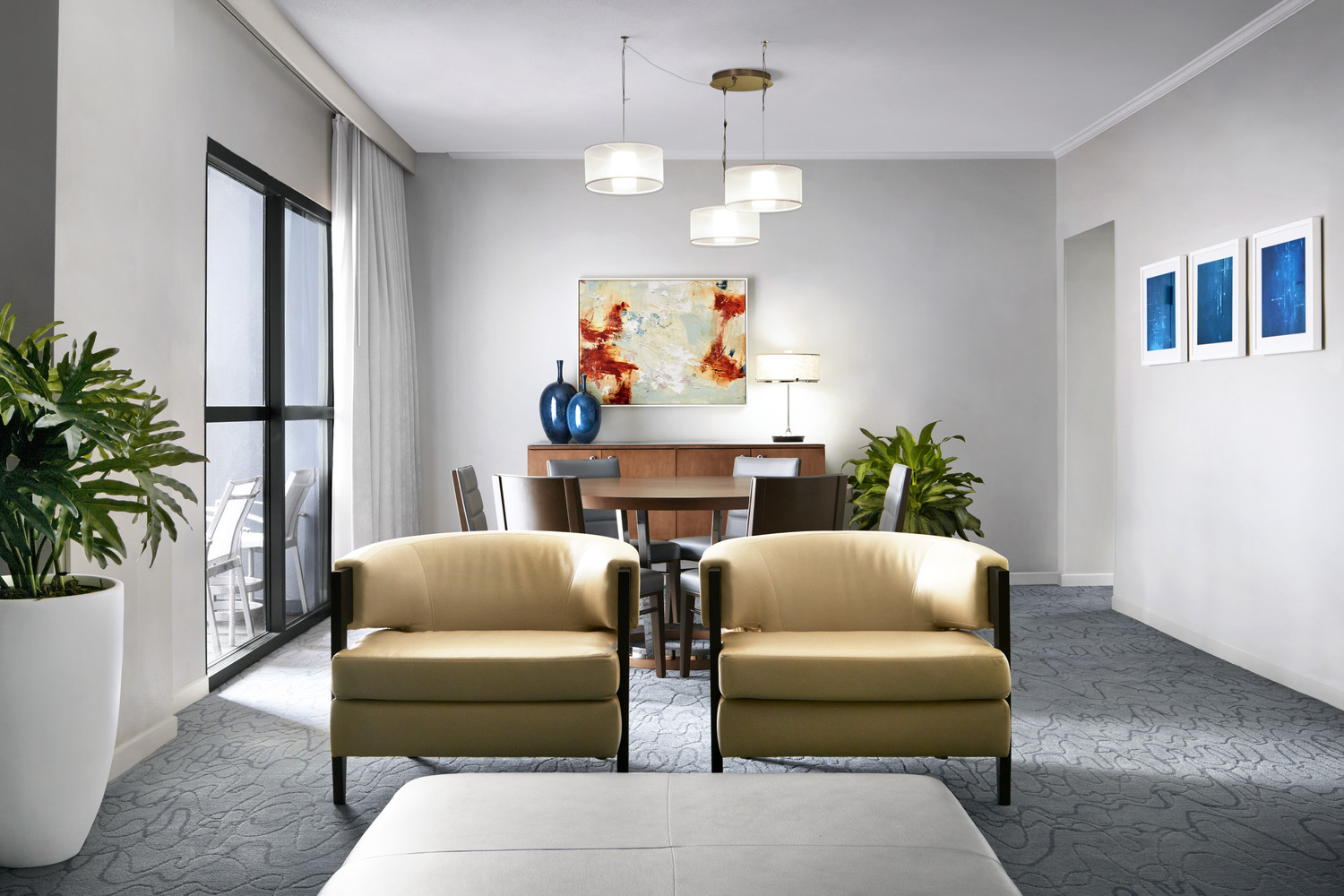 Современный декор, комфортабельная мебель. Просторная гостиная с зоной отдыха и обеденным столом на 6 персон, может совмещаться с одной или двумя спальнями. Ванная комната, гостевой туалет (две ванные в номере с двумя спальнями).