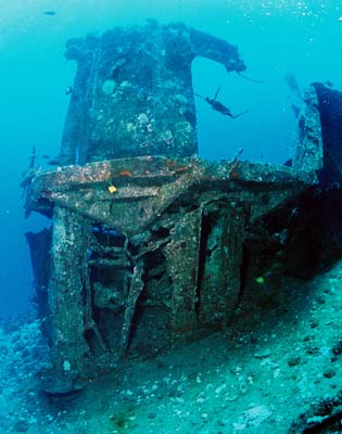 Corsair Plane Wreck — американский военный самолет разбился в 1946 году. Самолет вертикально лежит на песчаном дне на глубине около 30 метров, практически не поврежден. Теперь в самолете обитает множество угрей.