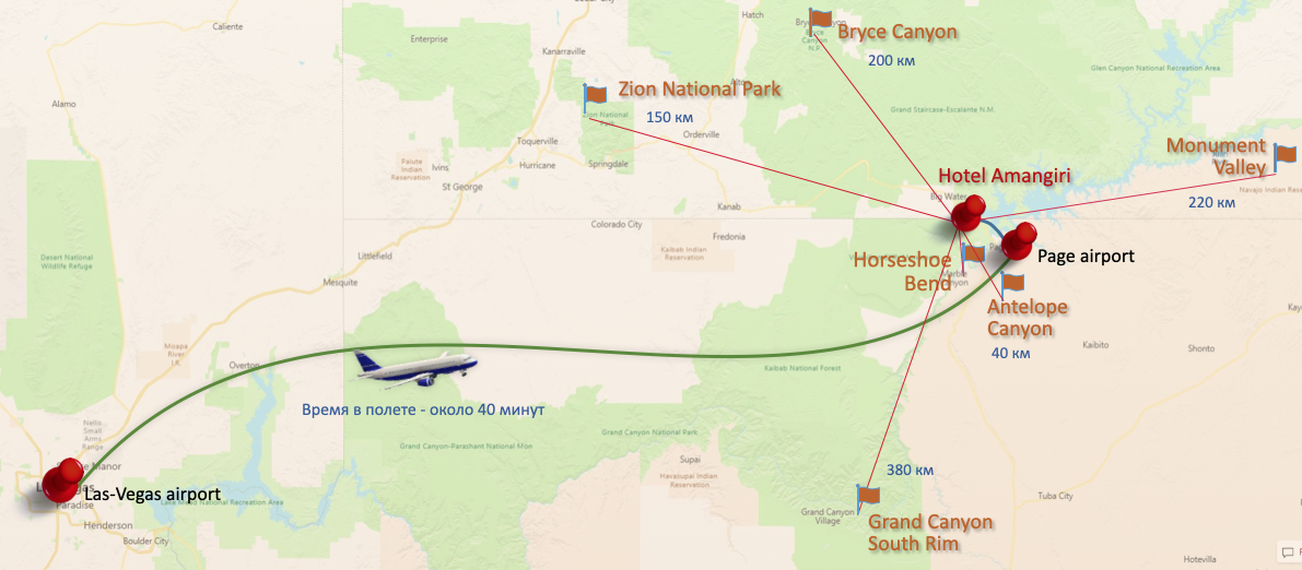 - Перелет Лас-Вегас - Пейдж (Рage), время в полете - около 40 минут.
